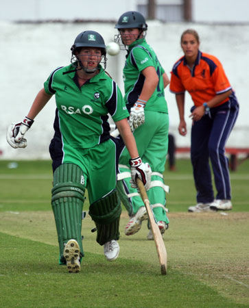They were given good support by Annemarie Tanke (20), and Violet Wattenberg (15). The pick of the Irish bowlers were Amy Kenealy (2-19), and Eimear Richardson (2-20).