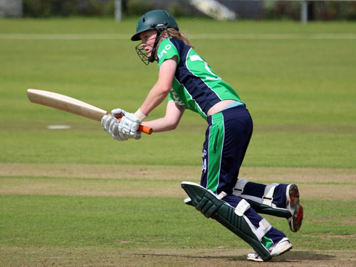 There was a shower during the interval - although short-lived, two overs were lost before the covers could be removed - and Ireland's target was reduced to 77 from 15 overs. Clare Shillington and Joyce opened for Ireland and showed that they weren't going to hang around in pursuit of their target. 23 runs came from the first three overs with Shillington being especially severe on anything short or over-pitched.