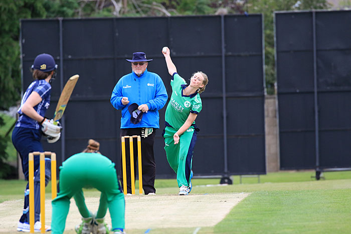 A disciplined bowling display by the Girls in Green saw Scotland restricted to 90 for 5 in their 50 overs, with the opening pair of Amy Kenealy and Aoife Beggs conceding just 10 and 12 runs respectively in their four-over spells.