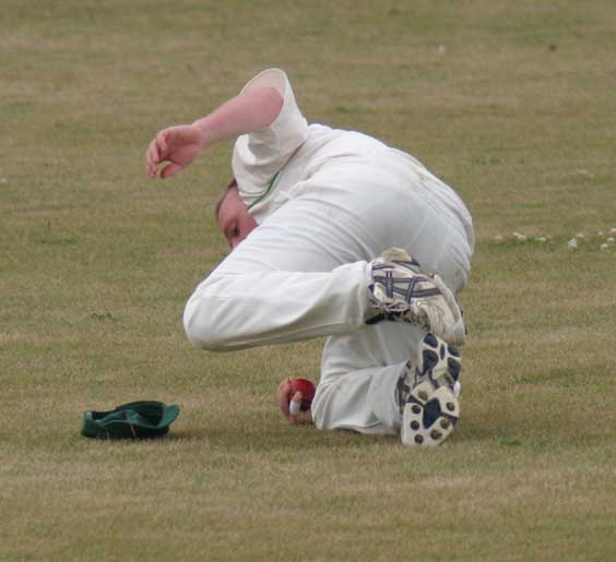 Russell takes a fine catch to dismiss Rathore of Denmark