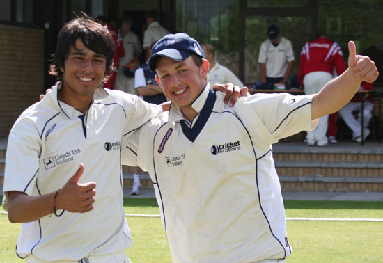 .....Calum Macleod celebrates Scott Forsyth's catch