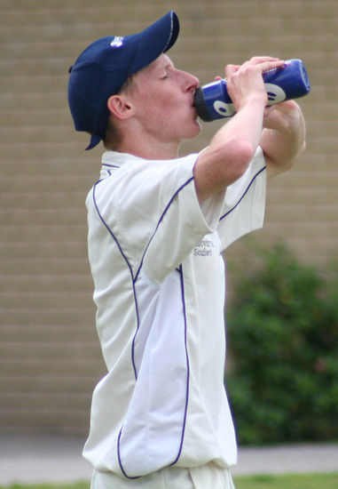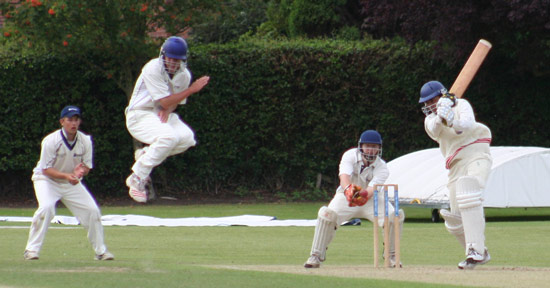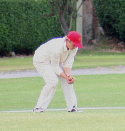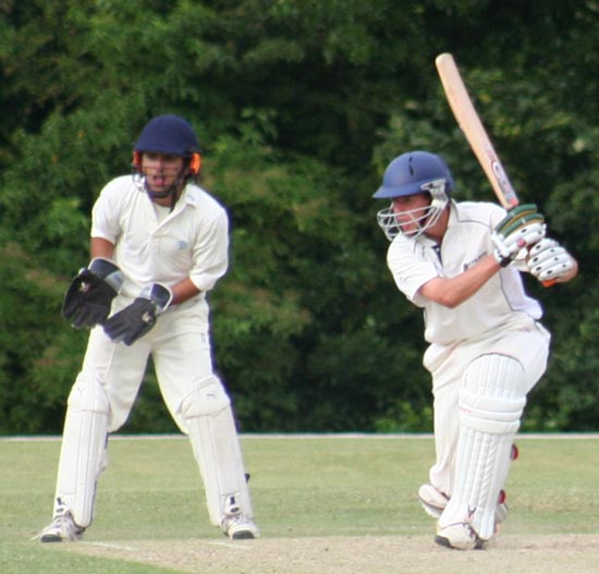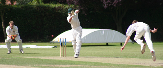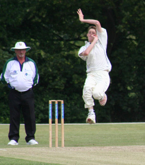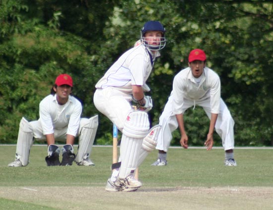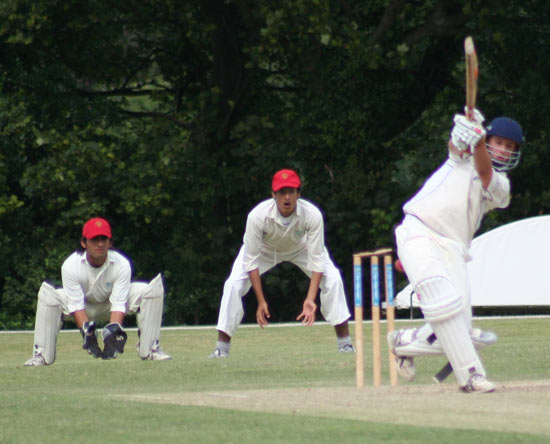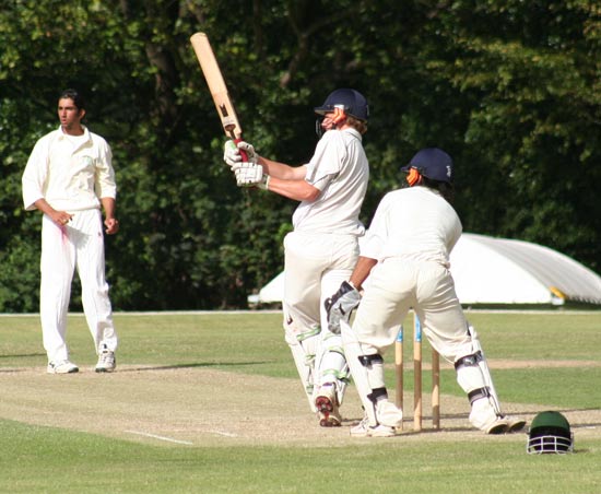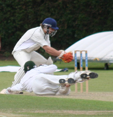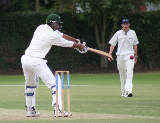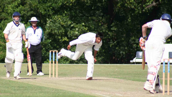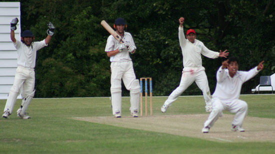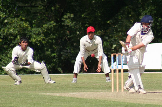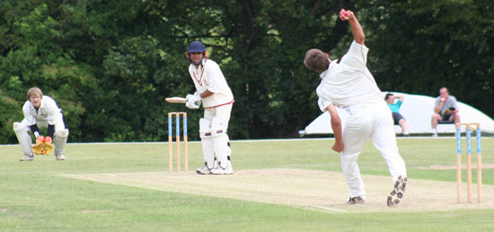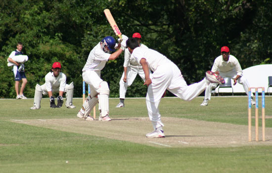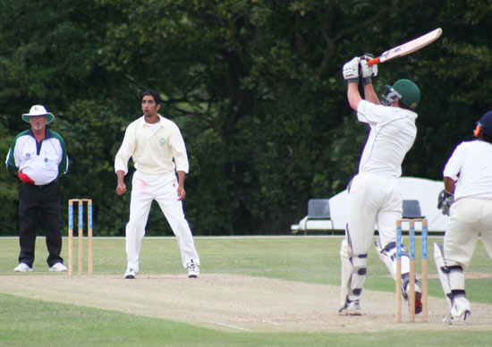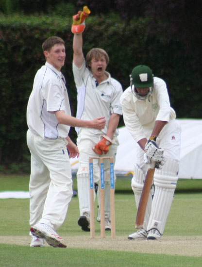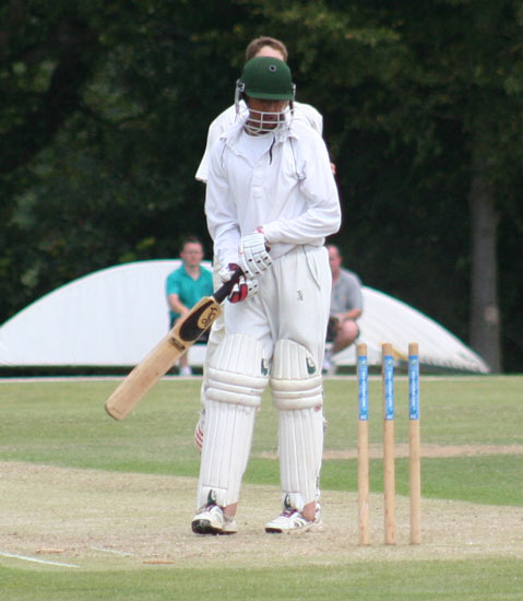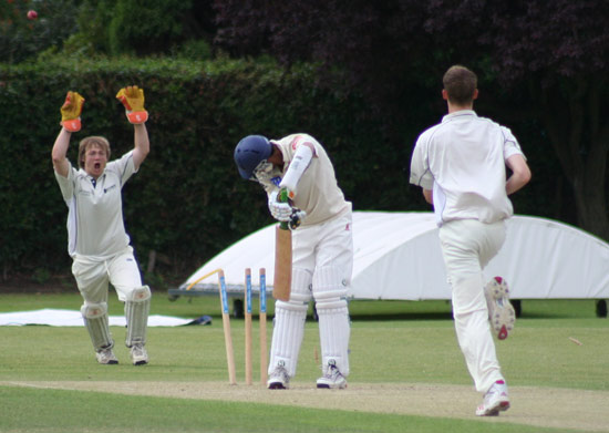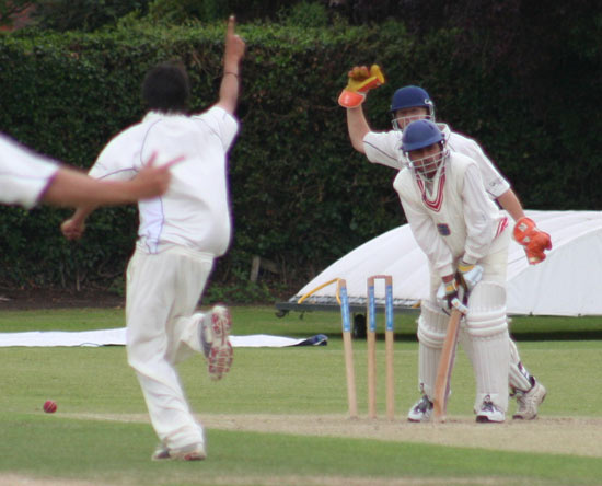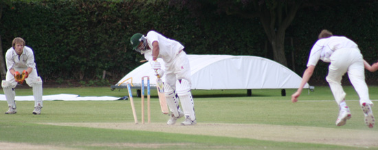 Kasaf Quereshi who top scored with 41 is bowled by Redhead