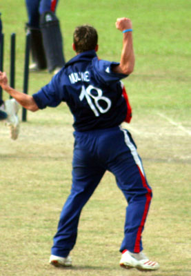Man of the Match Niall Mc Darby bowls Huw Waters