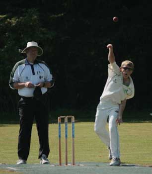 Stirling Fenton is hit on the helmet by Johnny Perrium's drive - no harm done