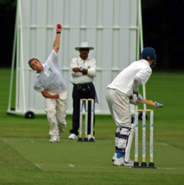 Sarnelli bowling to Steven Richards