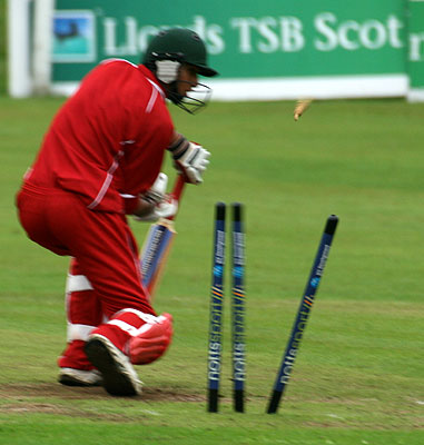 Waqar Akhtar bowled by Graham McDonnell