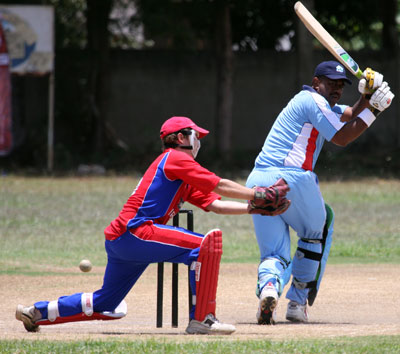 Andy Dewhurst demonstrates how he got the wicket with his slower ball