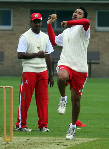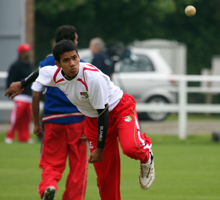 Slow left armer bowling for Singapore