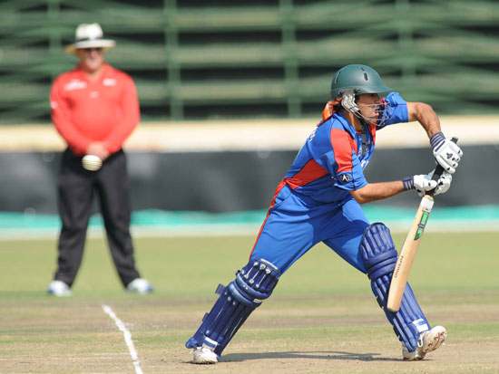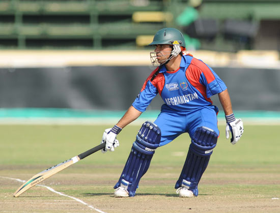 - Afghanistan's opening batsman, Karim Sadiq, on his way to an impressive 92