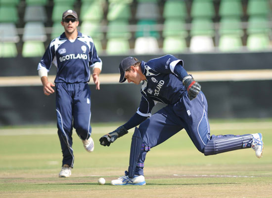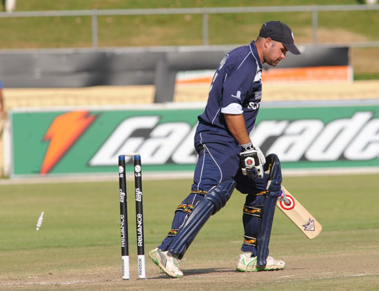 - Scotland captain, Ryan Watson, on his way to a disappointing 14 runs.