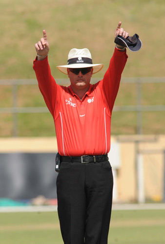 - A six for Mohammad Sami Shinwari signalled by Paul Baldwin