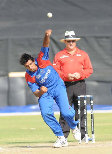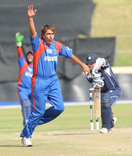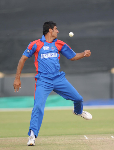 - Afghanistan fast bowler, Shahpoor Zaoran, in action.