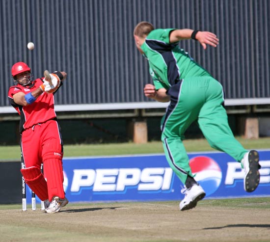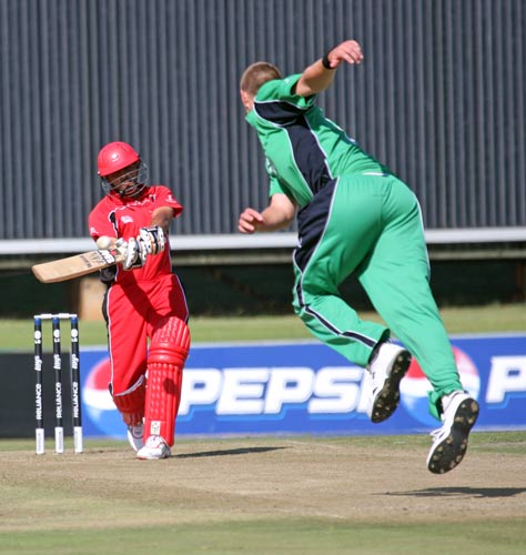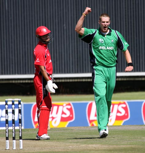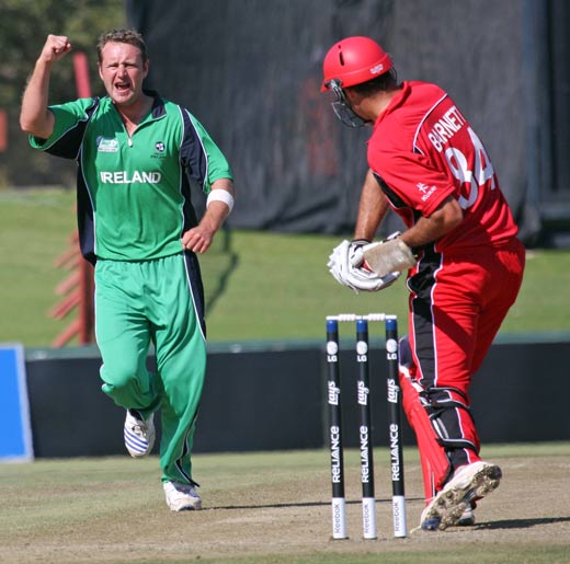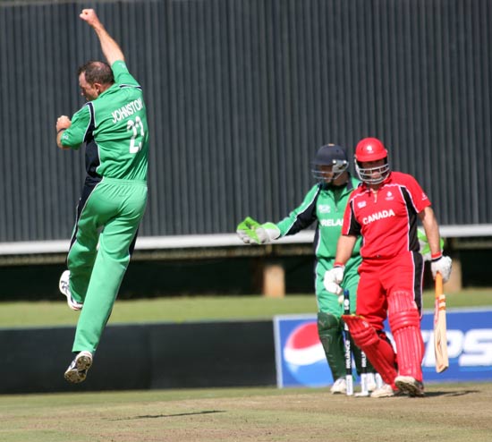 Trent Johnson jumps for joy after dismissing Ian Billcliff