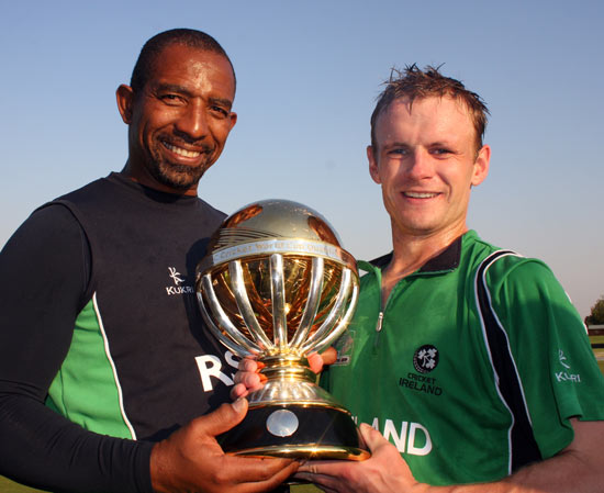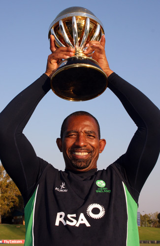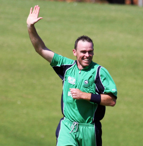Trent Johnston with the Trophy and match ball after taking 5-14