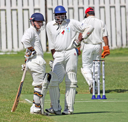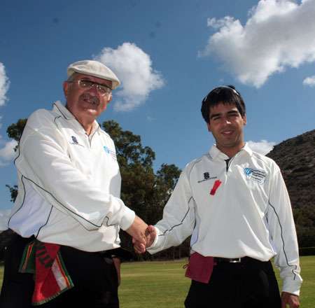 Umpires Sandy Scotland and Ben Lougheed