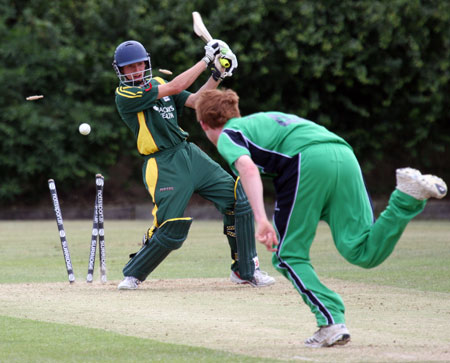 Adam Martel is bowled