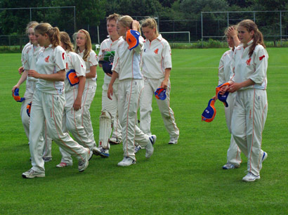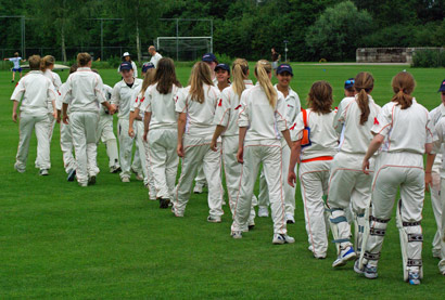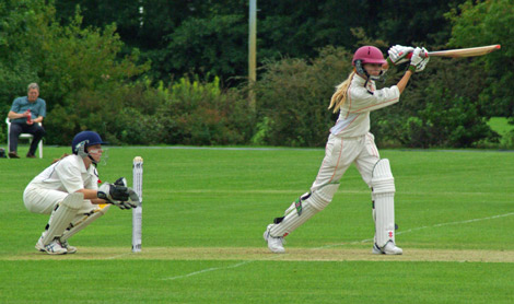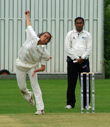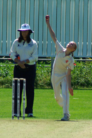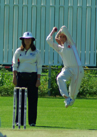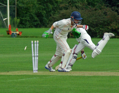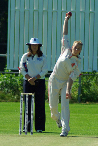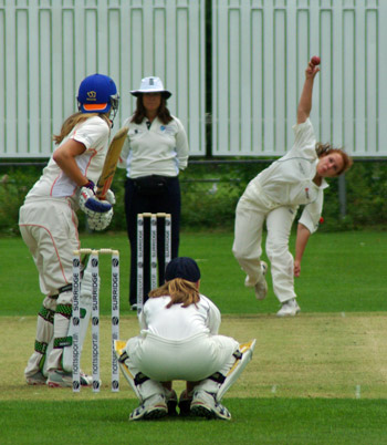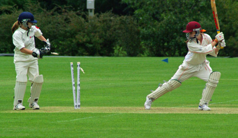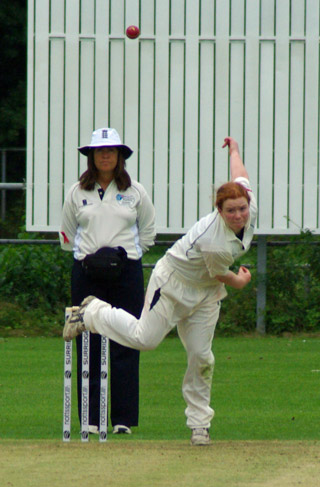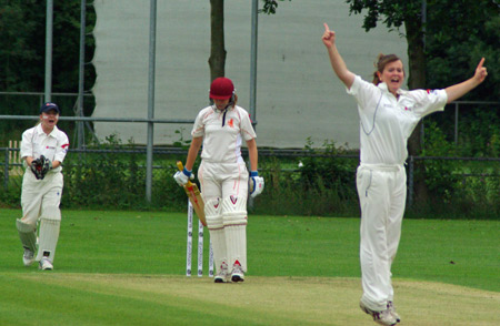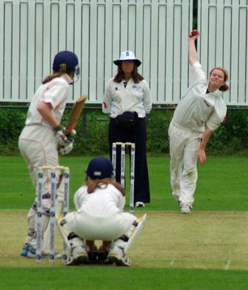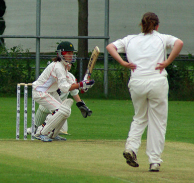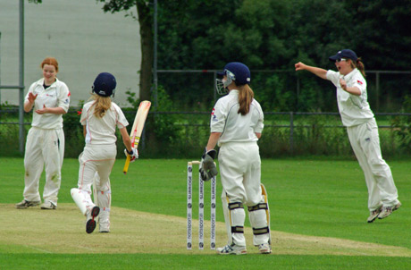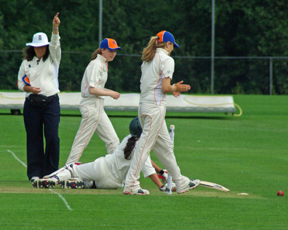 Umpire Jane Carpenter is in no doubt as Nadia Wheeler fails to make her crease . . .