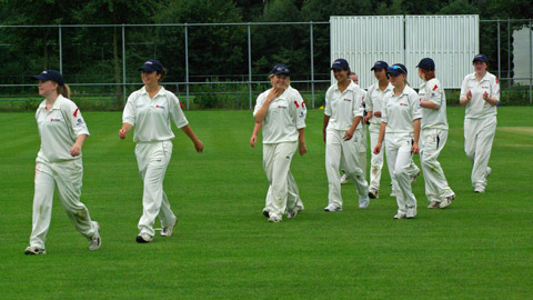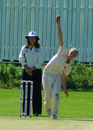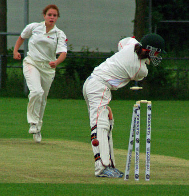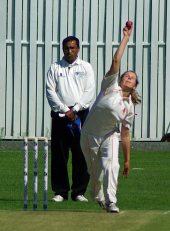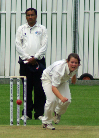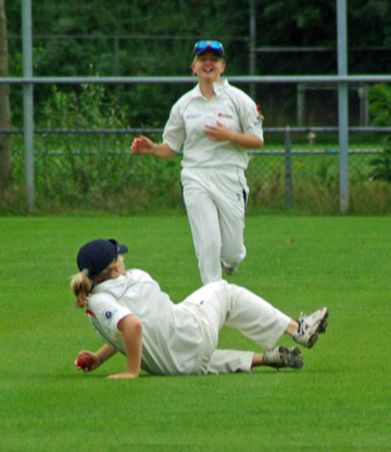 . . . and then Rebecca Waldie takes a diving catch to dismiss Leonie Bennett