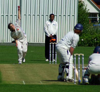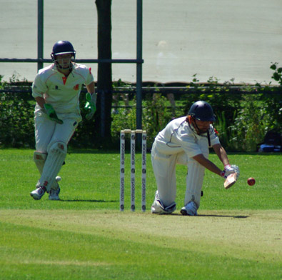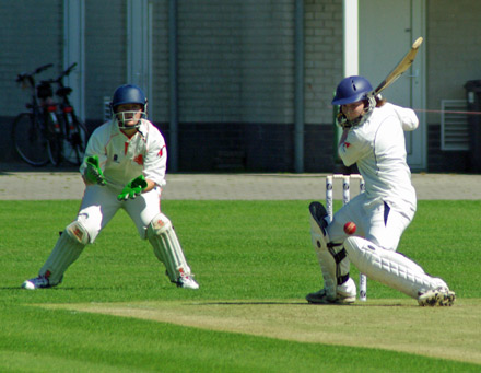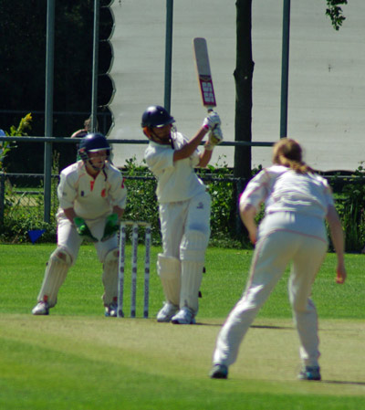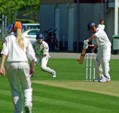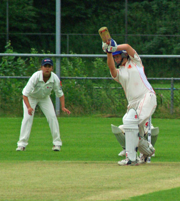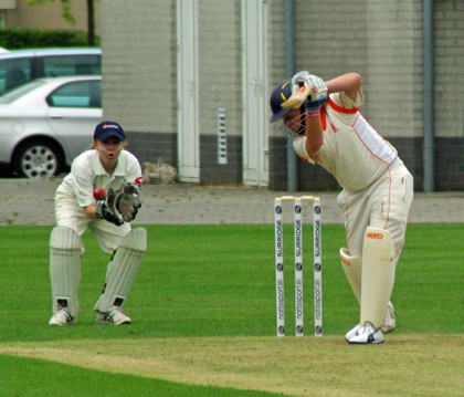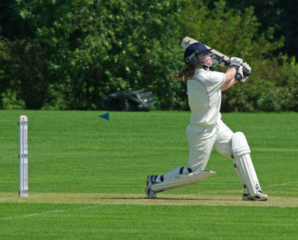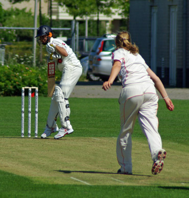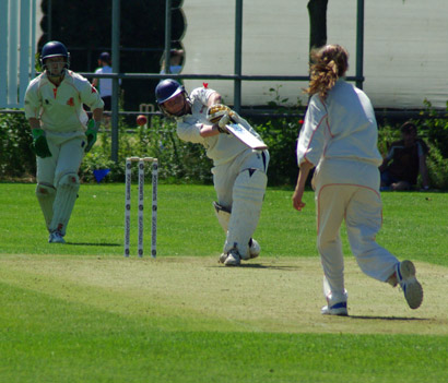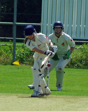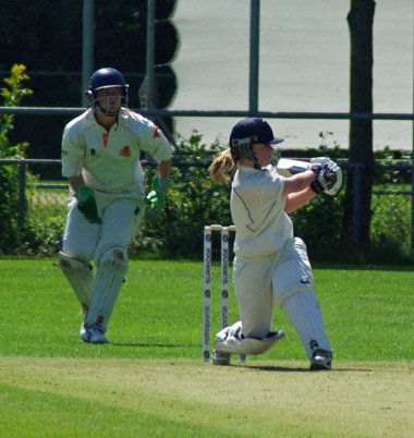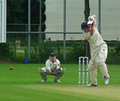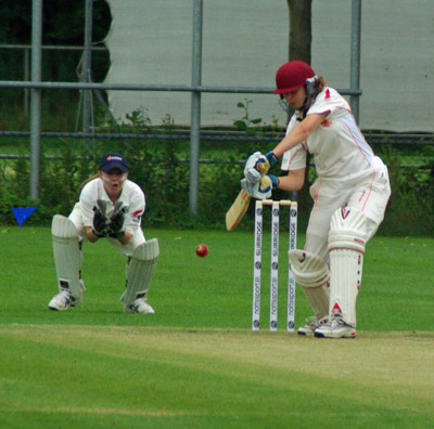 'Catch!' is the shout as Roos Dickmann hits Wilkinson to square leg . . .