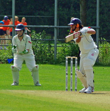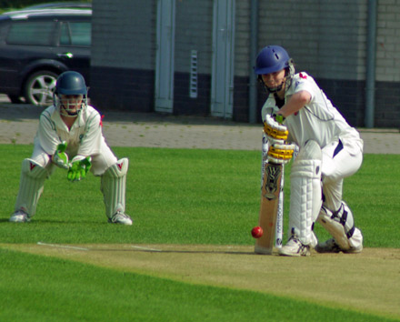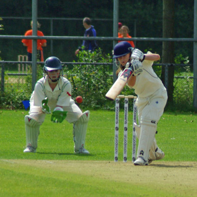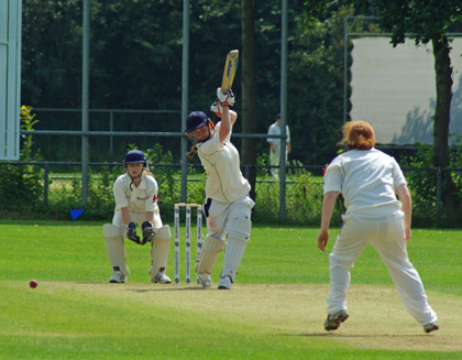 Garth plays and misses outside off stump . . .