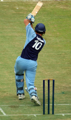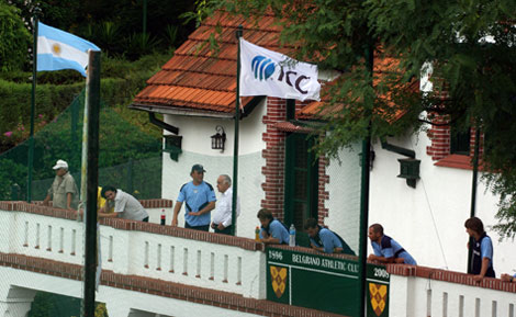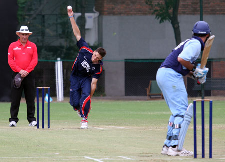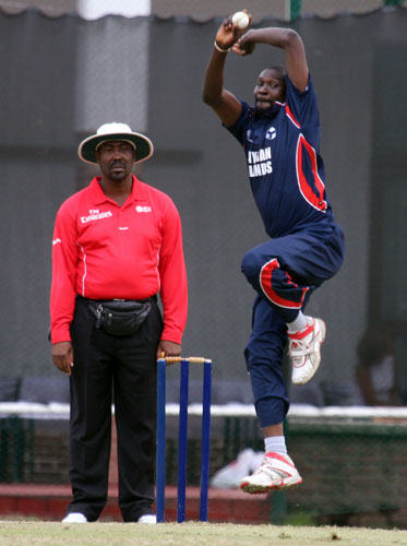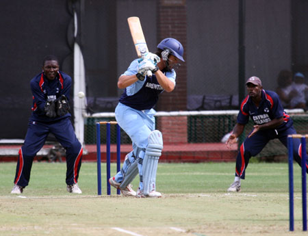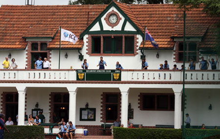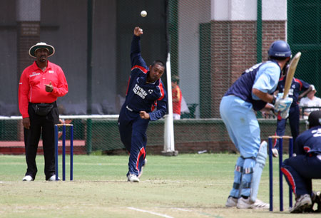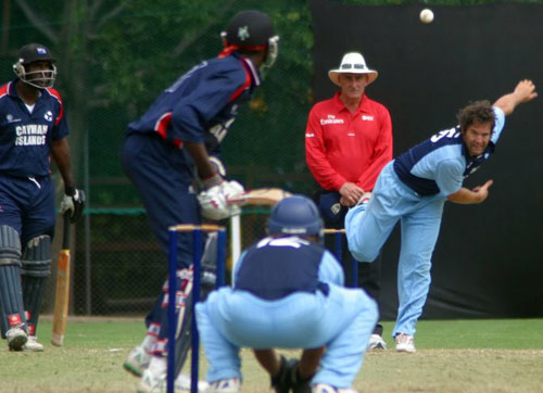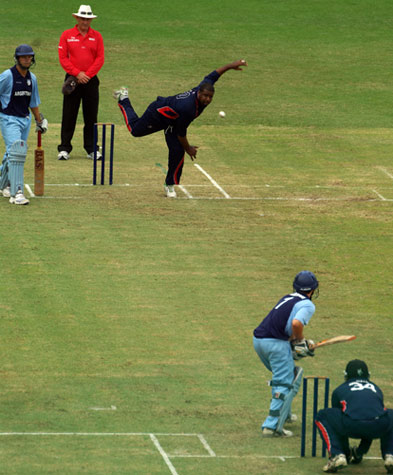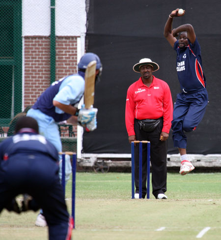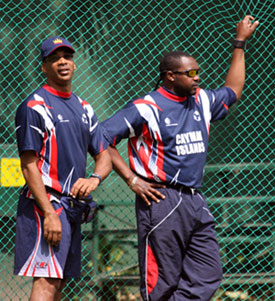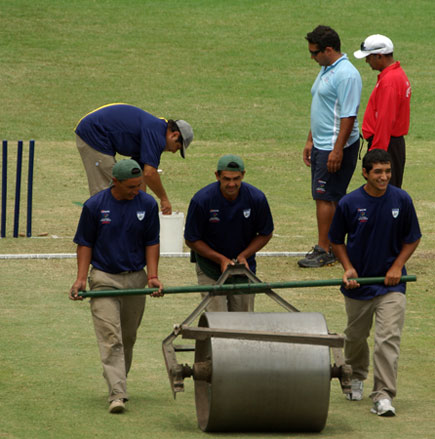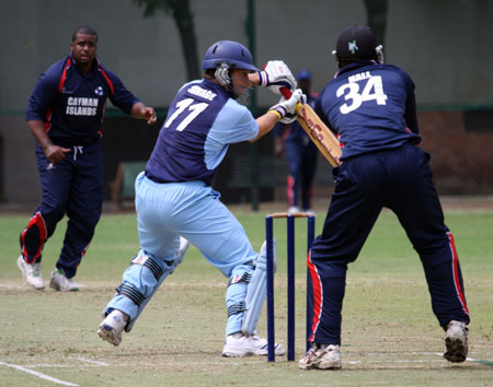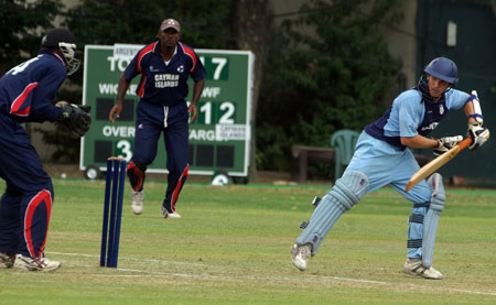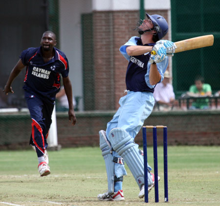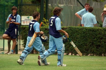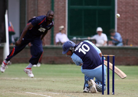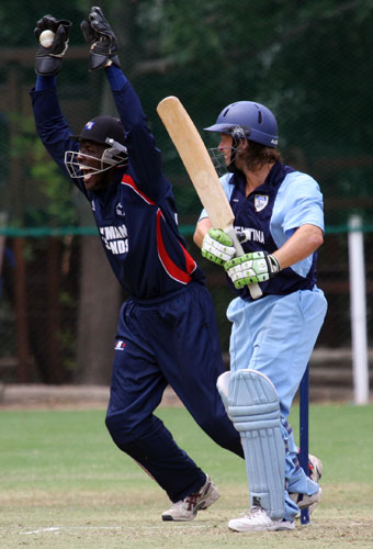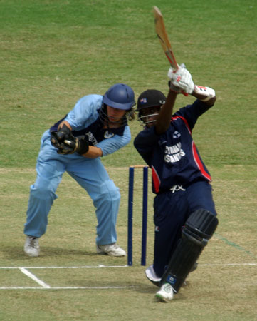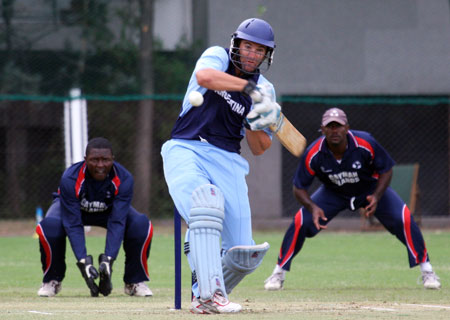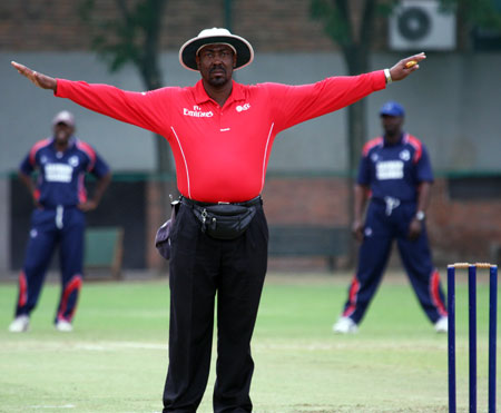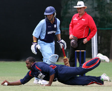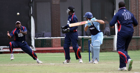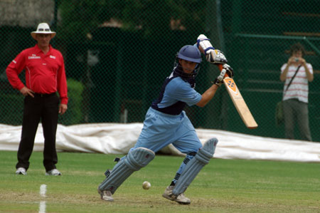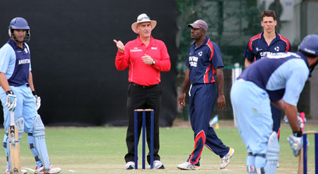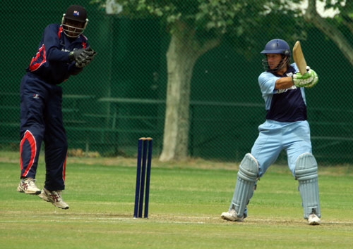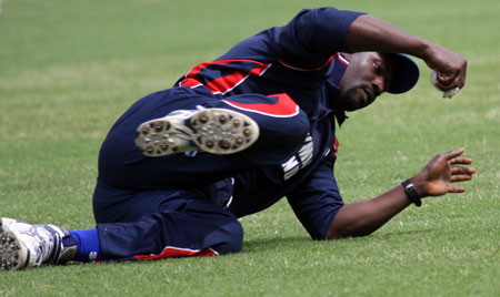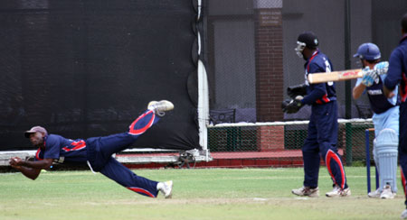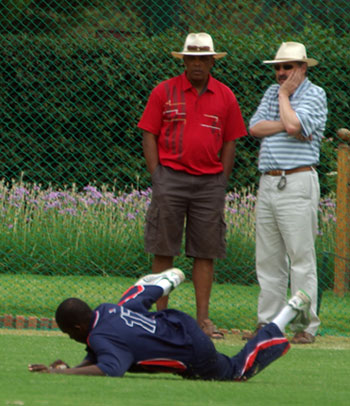 Well fielded under the watchful gaze of John Holder and David Jukes