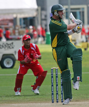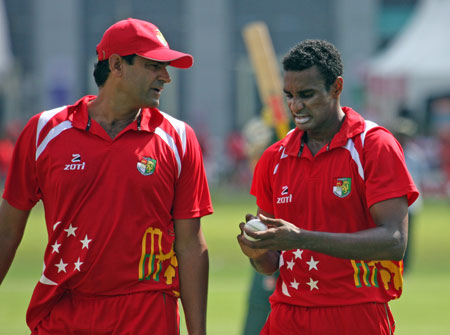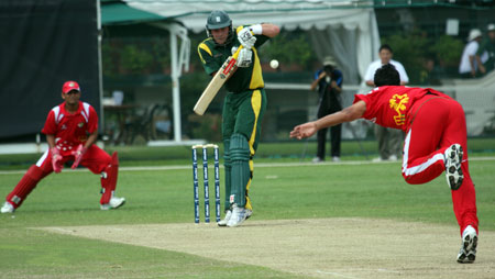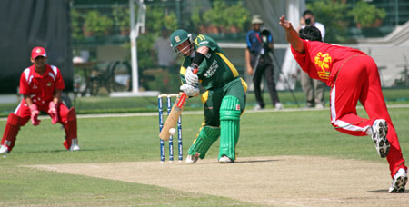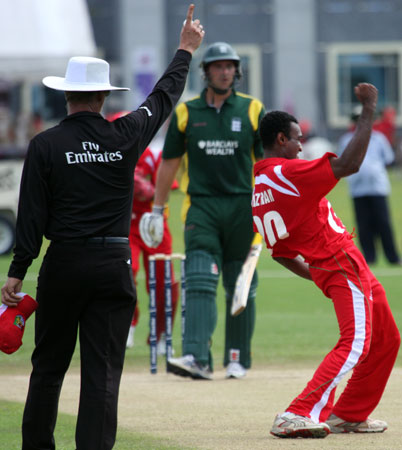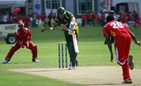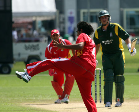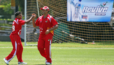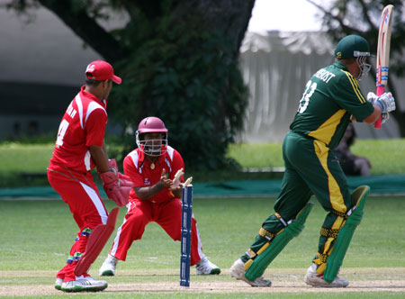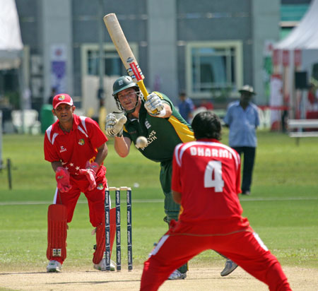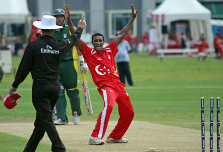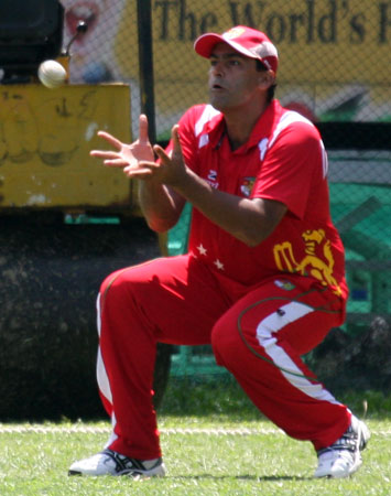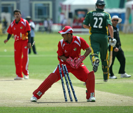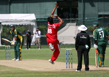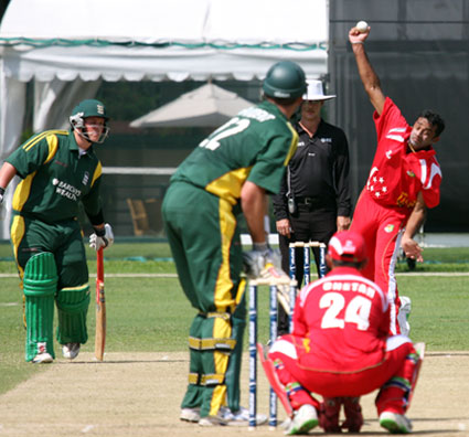 Savident hits a return catch to Dharmichand..