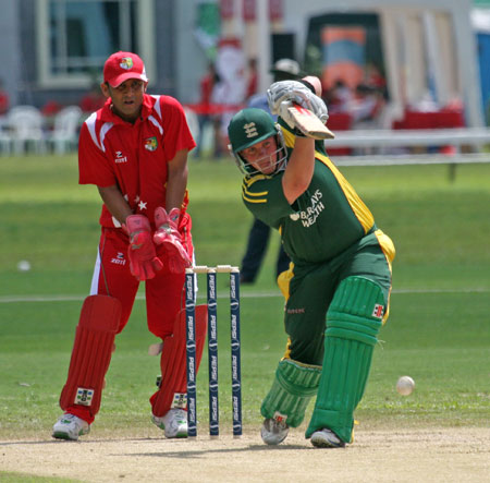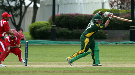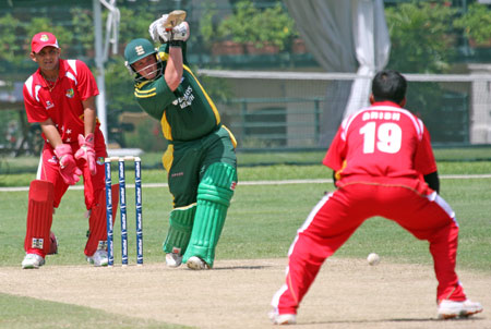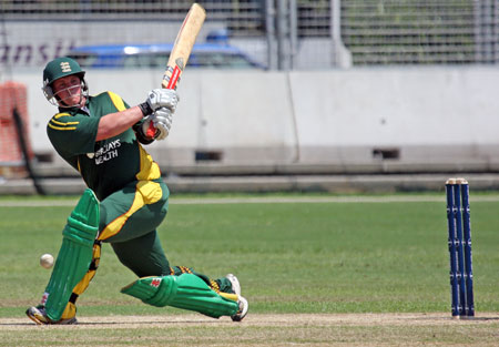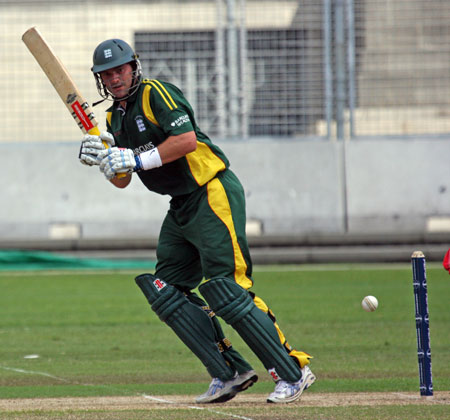Lee Savident dispatches the ball to the boundary