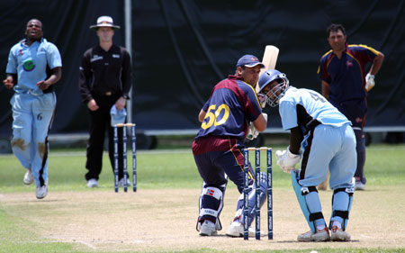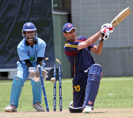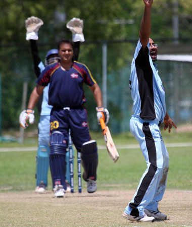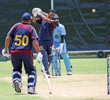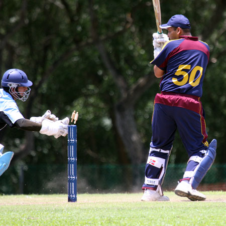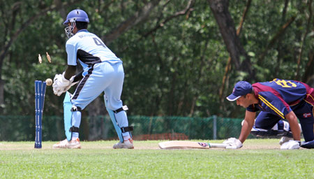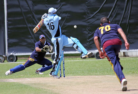 Denzil Sequeira tries a run out