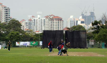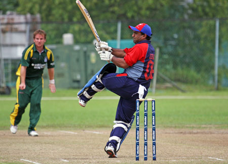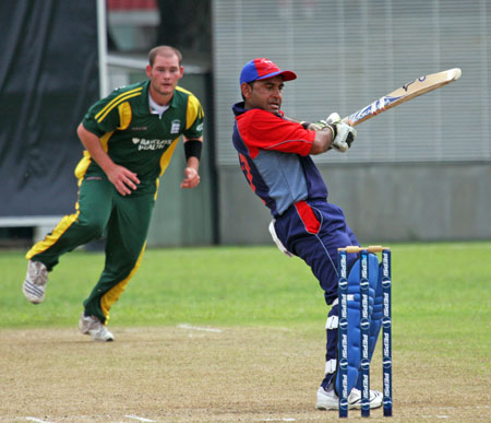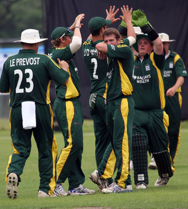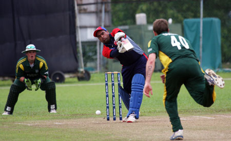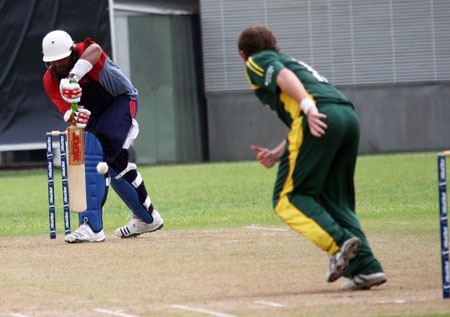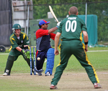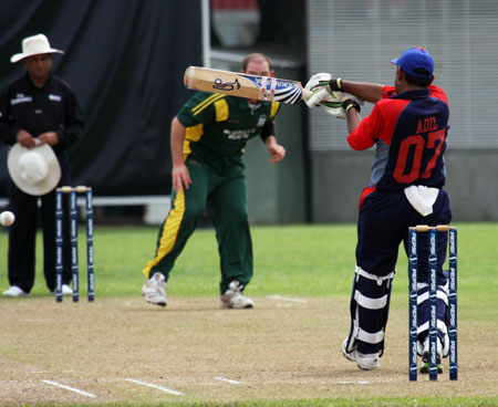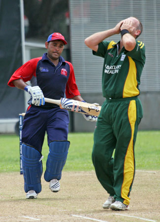 Sahazad Ahmed drives Queripel to cover