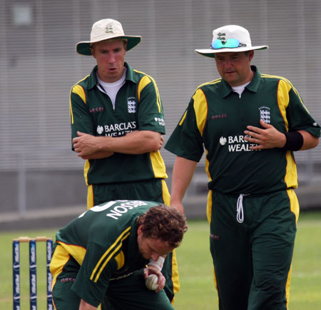 Jeremy Frith and Stuart Le Provost offer advice to Stuart Bisson