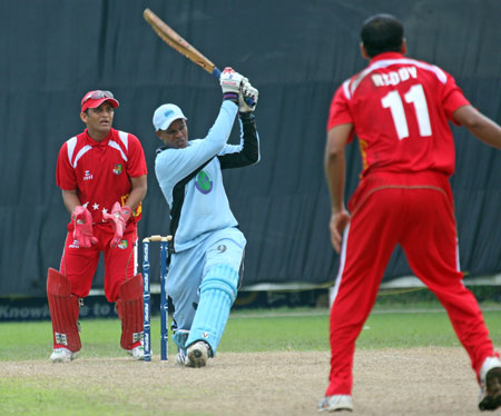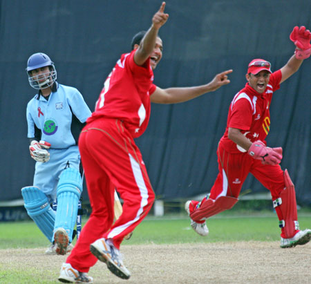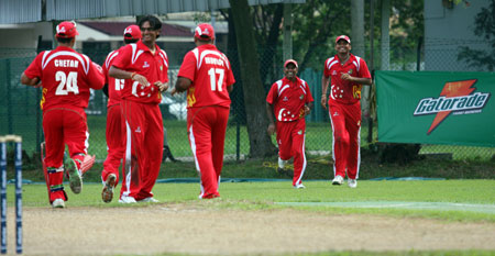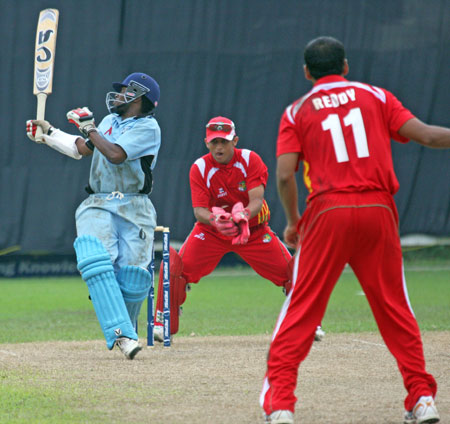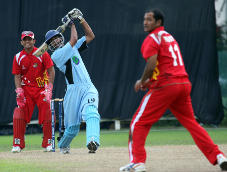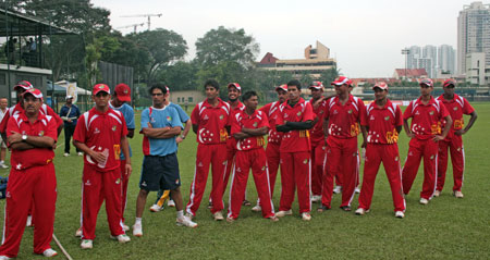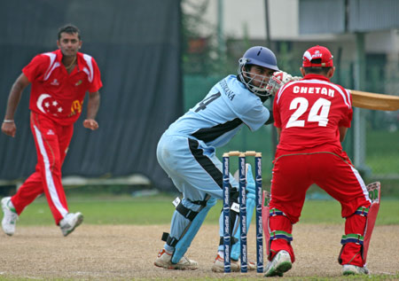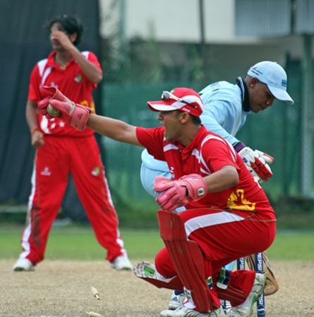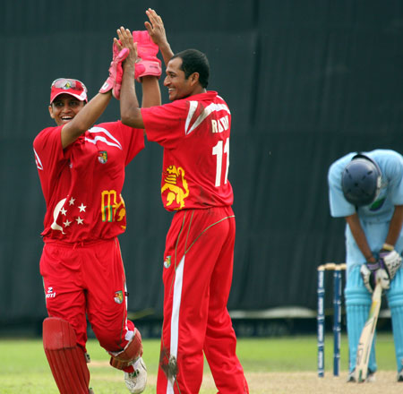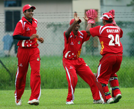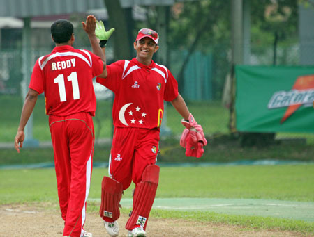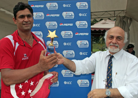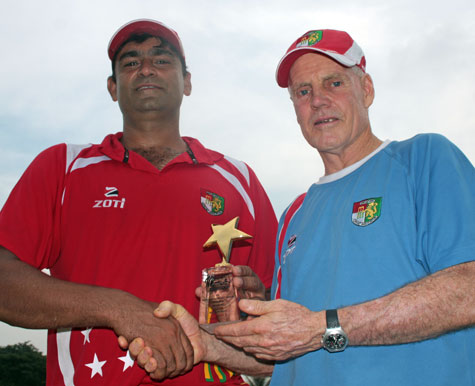 MOM Saad Janjua congratulated by his coach Trevor Chappell