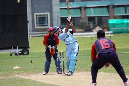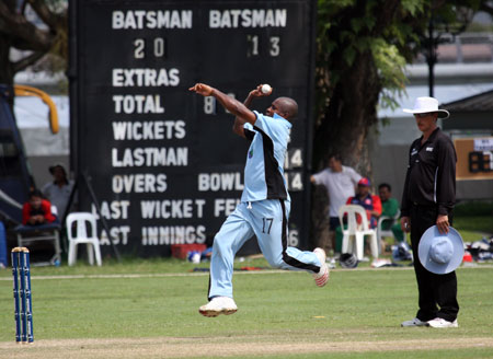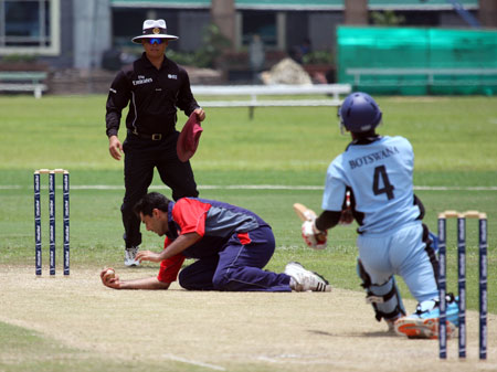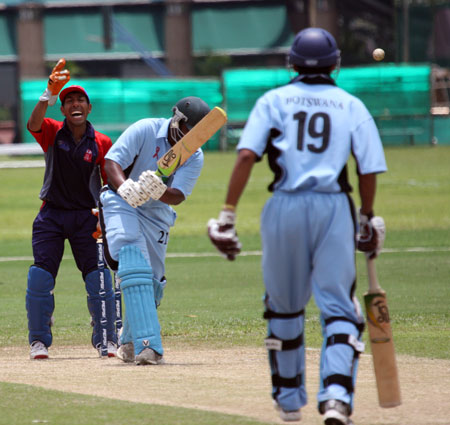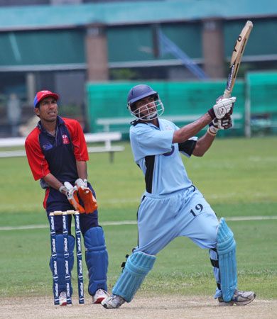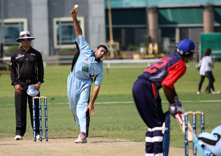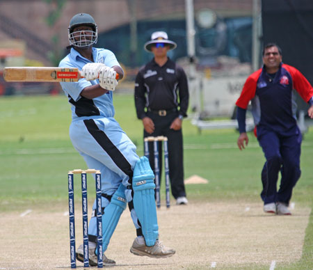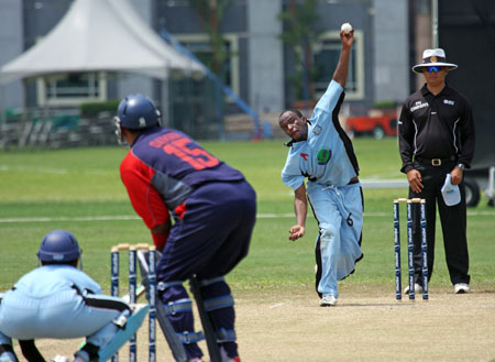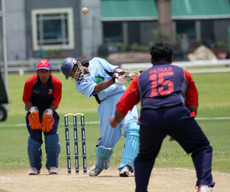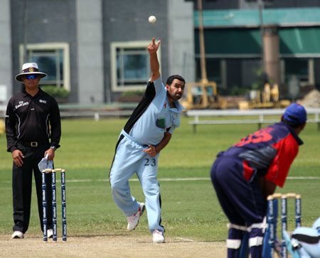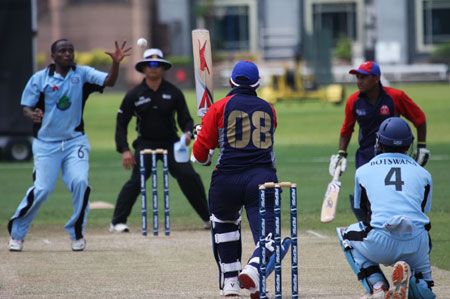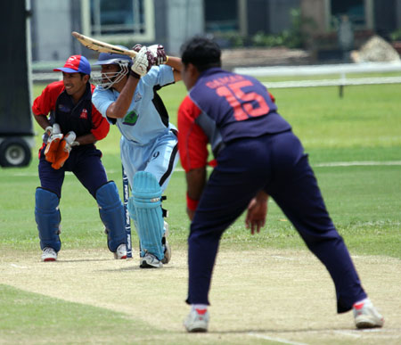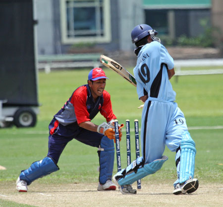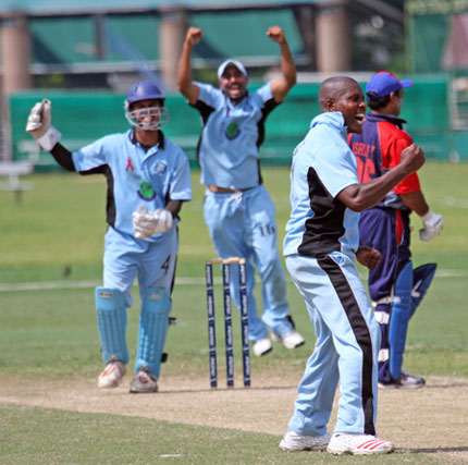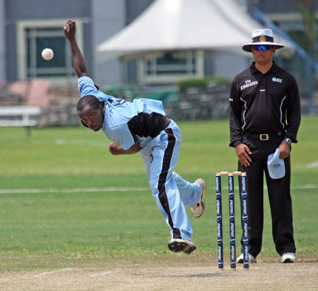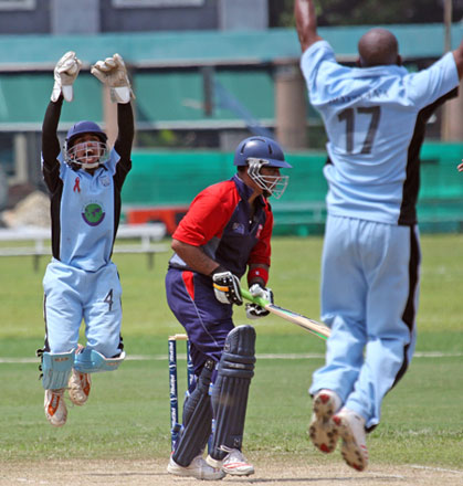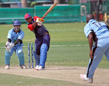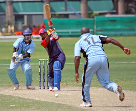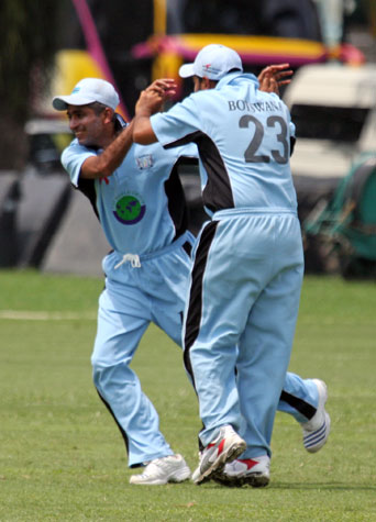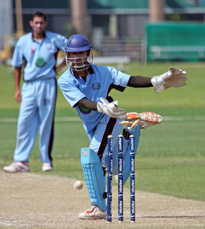 Denzil Sequeira is brillaintly caught and bowled by Yaser Sadeq