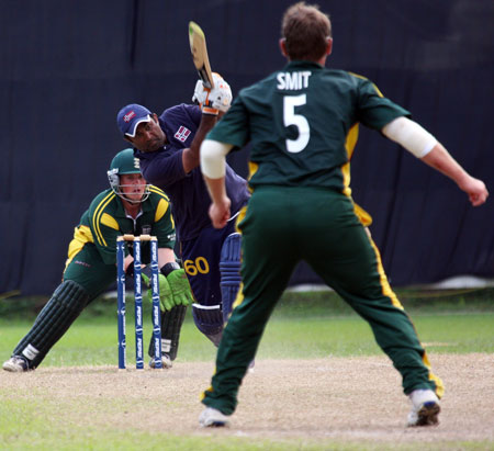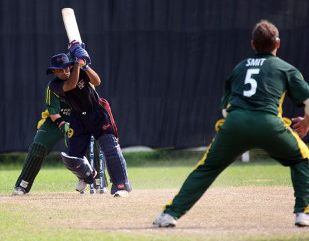 Aziz Ataul hits a boundary