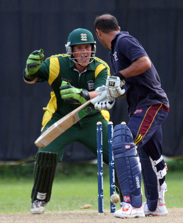 Tom Kimber attempts the run out