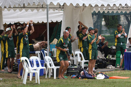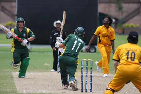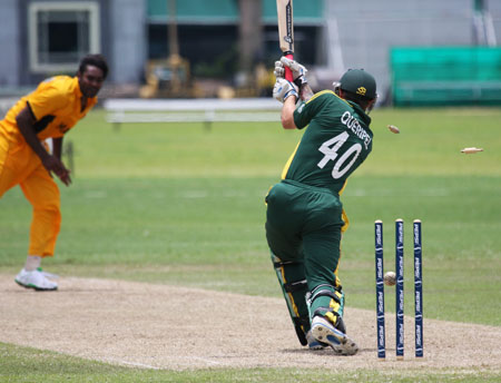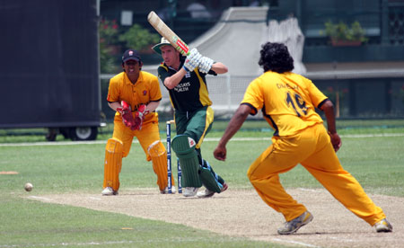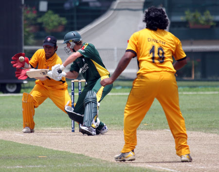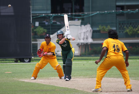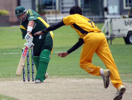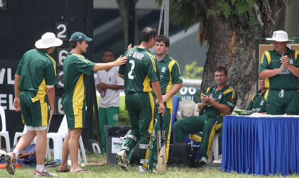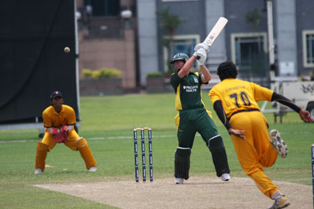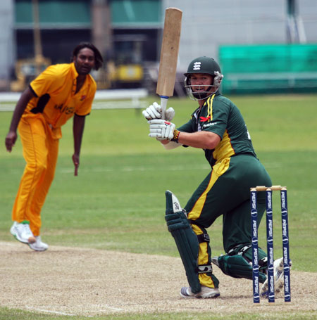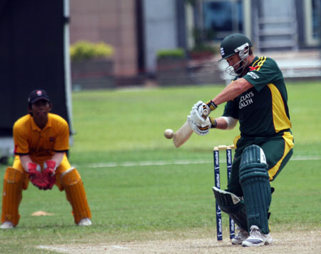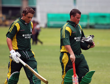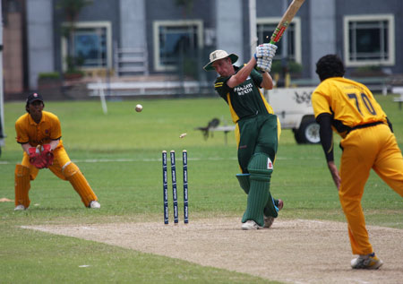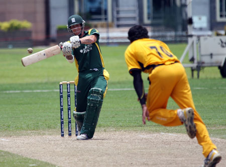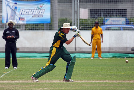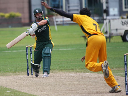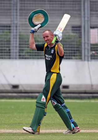 Player of the tournament Jeremy Frith raises his bat for his hundred