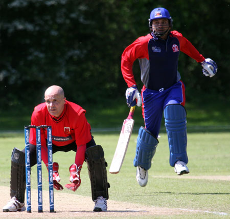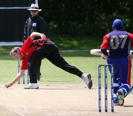 Brilliant caught and bowled by Rex Purnell to dismiss Zafar Zaheer