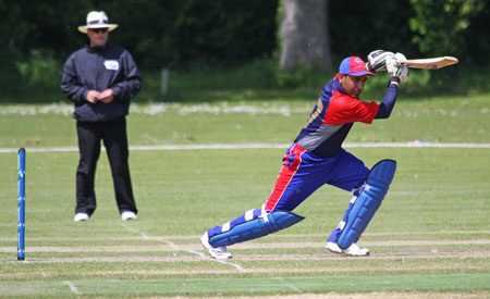 Boundary for Adil Hanif on his way to 92 not out