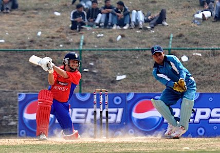 Dean Morrison and Matthew Hague go out to open the Jersey innings