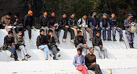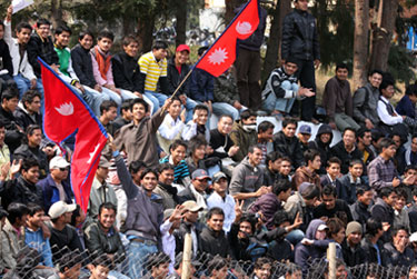 The large crowd cheers on Nepal
