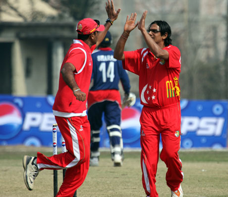 Singapore celebrate the wicket