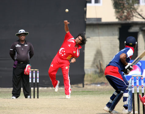 Pramodh Singaraja bowling for Singapore