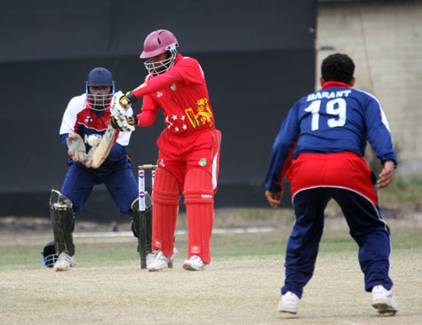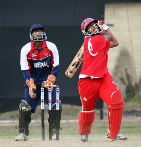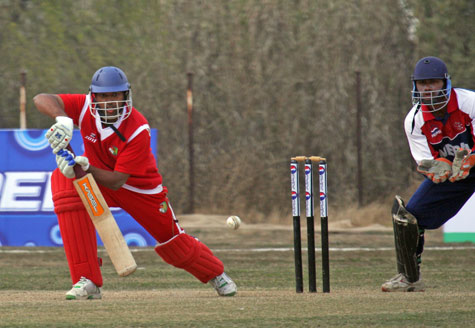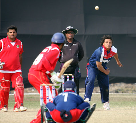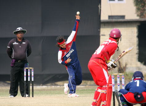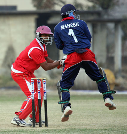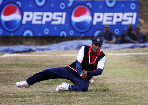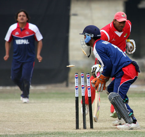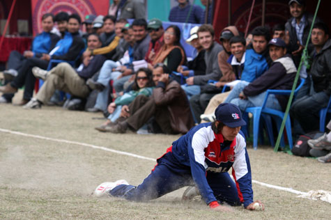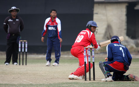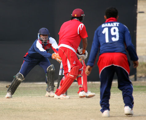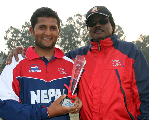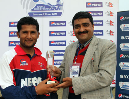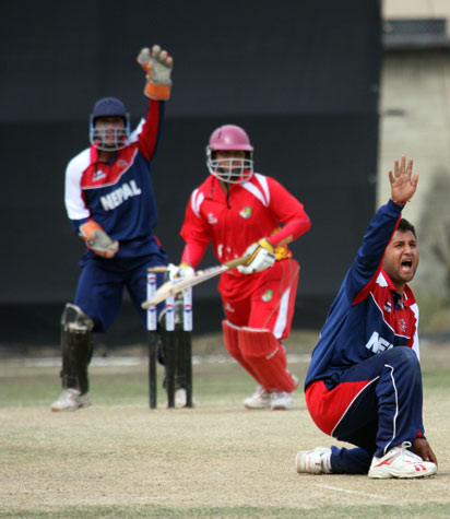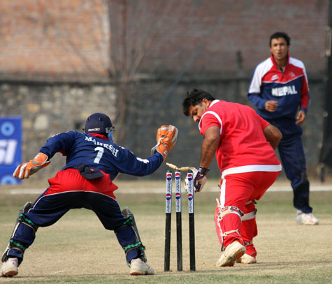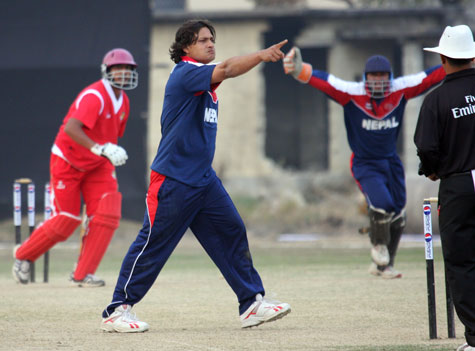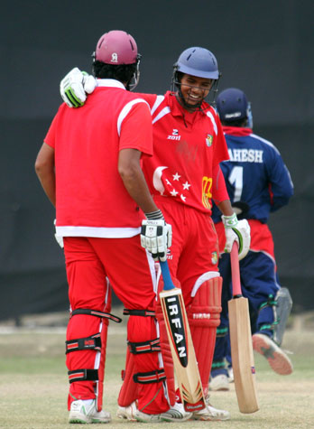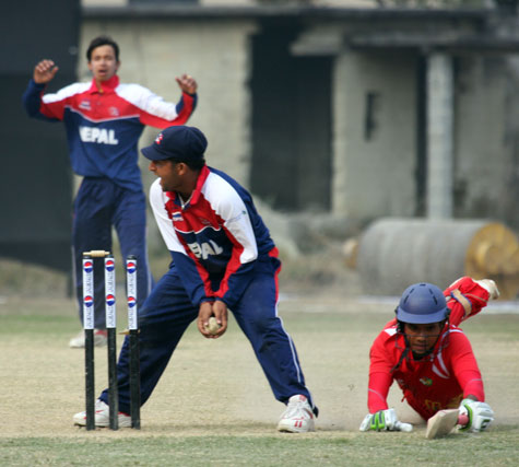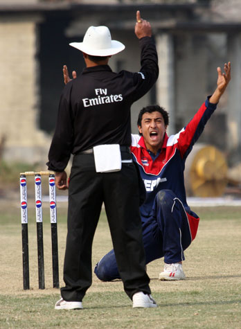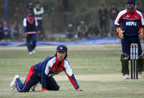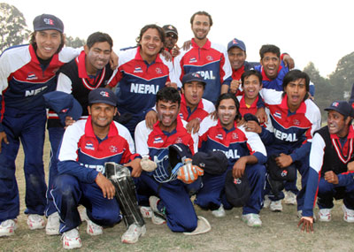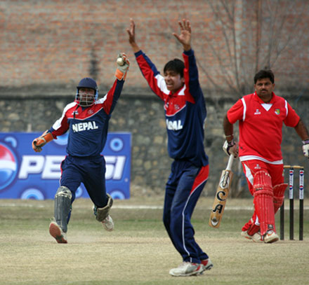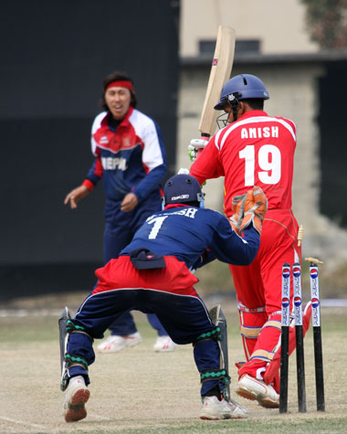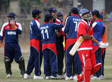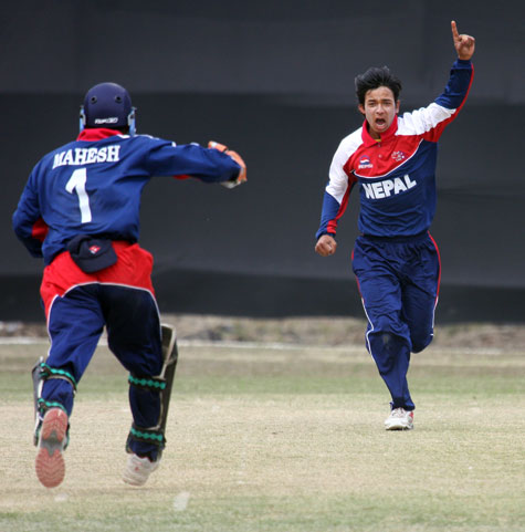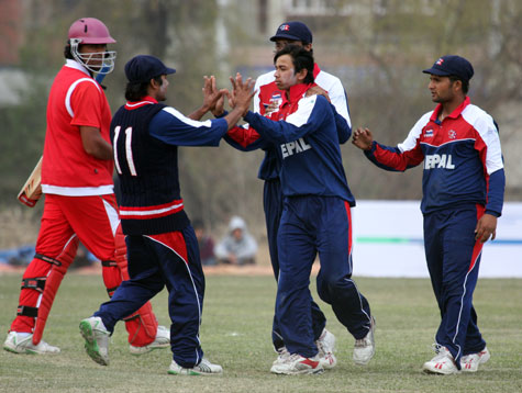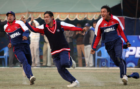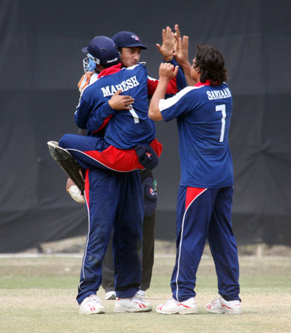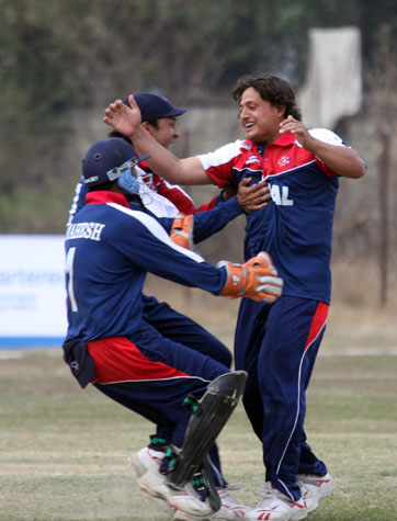 Dipendra Chaudhary and his team mates celebrate the winning catch