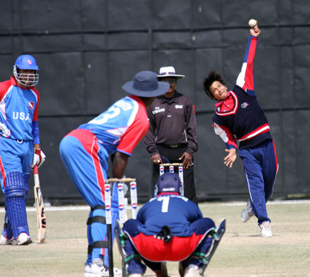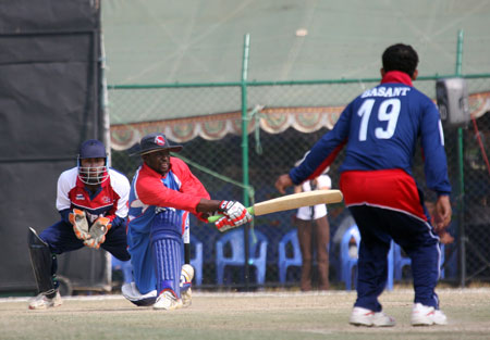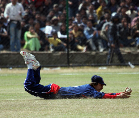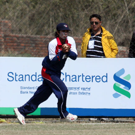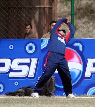 Shakti Gauchan takes a great catch to dismiss Steve Massiah