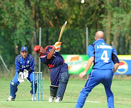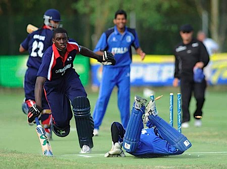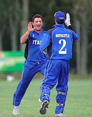Italy's Nic Northcote whips off the bails to dismiss Best for 85