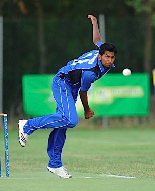 Gayashan Munasinghe bowls Alassandro Morris