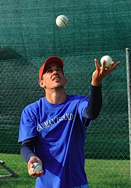 Some pre-match juggling for Cayman Island's Ronald Ebanks