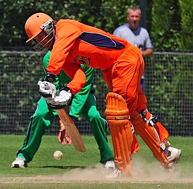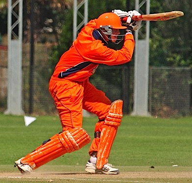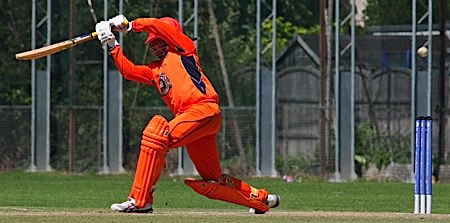 Lukas Brouwer plays a lofted shot to the square leg boundary