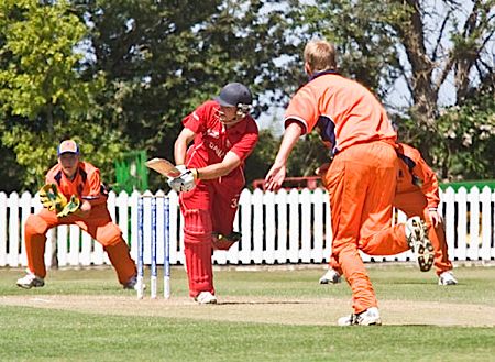 Gruijters is caught by wicketkeeper Klokker off the bowling of Michael Pedersen