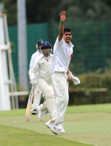 Midhun Lal of Switzerland is presented with match ball for his hat trick against Austria by Tournament Director Chris Porter. Also present is Tournament Referee Doug Ferguson.