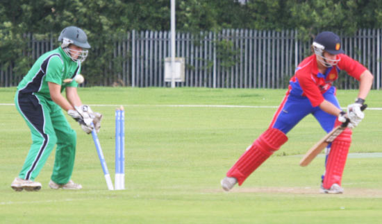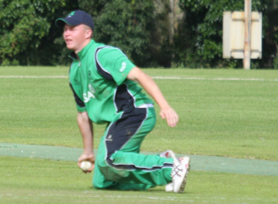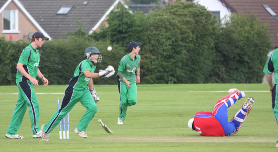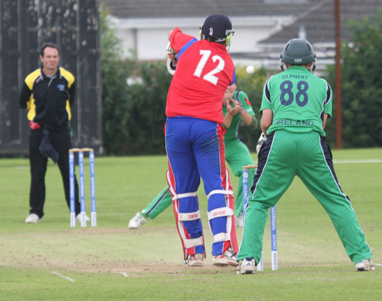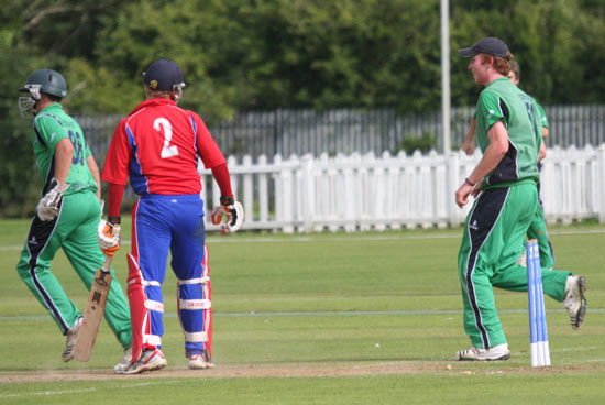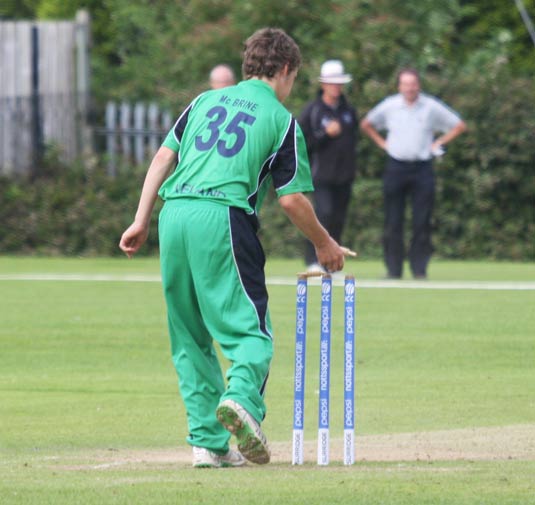 Stevens clips to mid wicket and caught by Andrew McBrine
